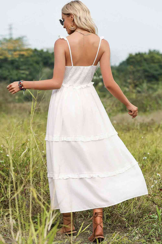 Tie Front Smocked Waist Flounce Sleeve Dress
